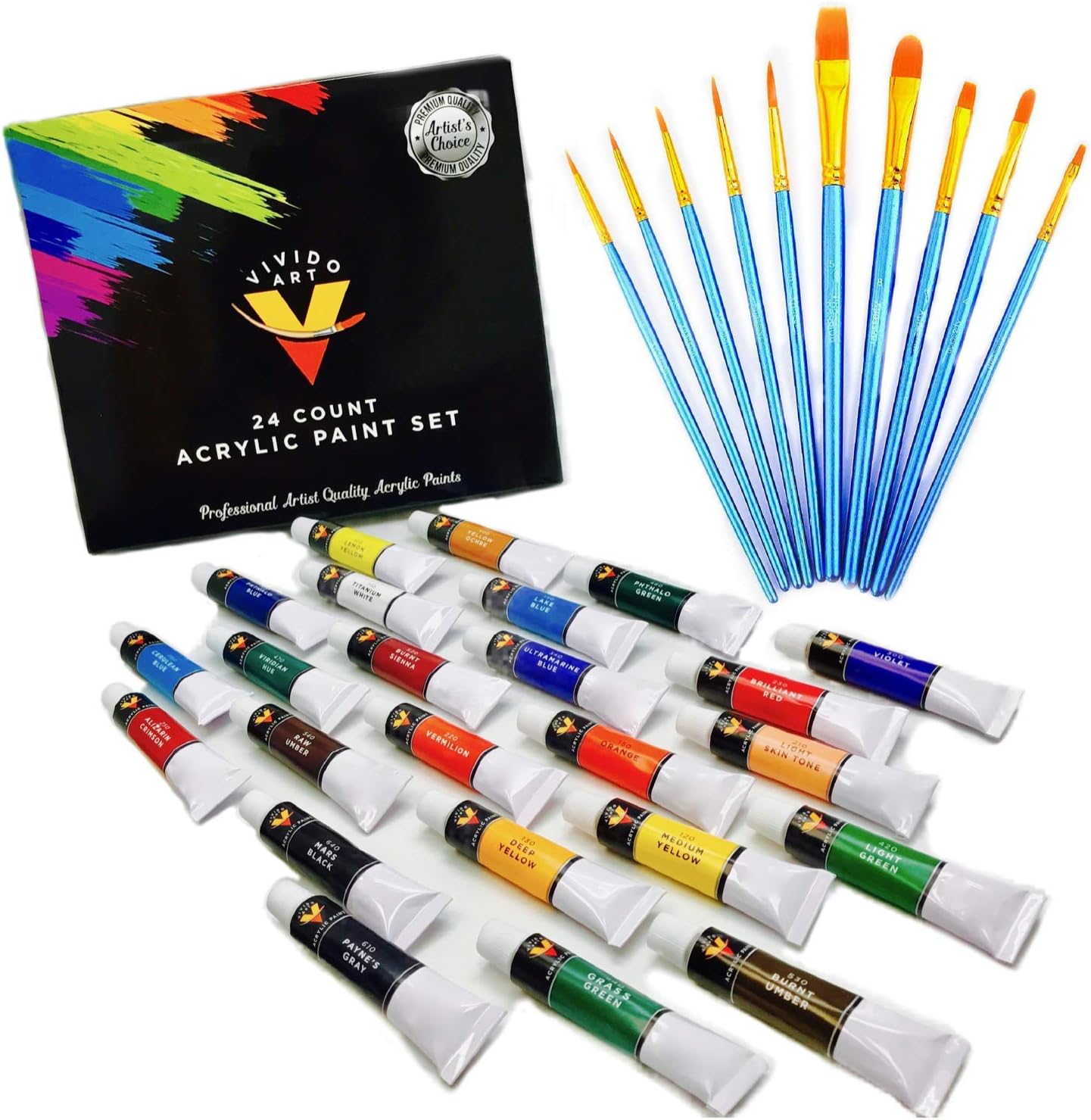 Amazon Com Acrylic Paint Set 24 Colors Bonus 10 Acrylic Paint Brushes Included Acrylic Paints For Artists Heavy Body Acrylic Paint Artist Quality Acrylic Paint Canvas Paint With Acrylic